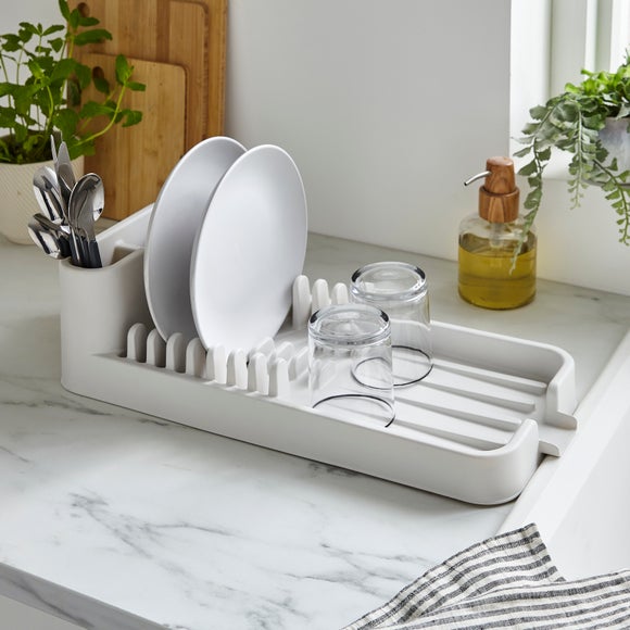 Keep your counters dry and your dishes organised with the Compact Dish Drainer. Made from heavy-duty plastic, it’s rust-free and easy to wipe clean, unlike traditional metal racks. Its compact and portable design makes it ideal for travel, camping, or RV use. The angled drain board channels water directly into the sink, keeping your surfaces clean and dry. Available in a range of colours to suit any kitchen style.