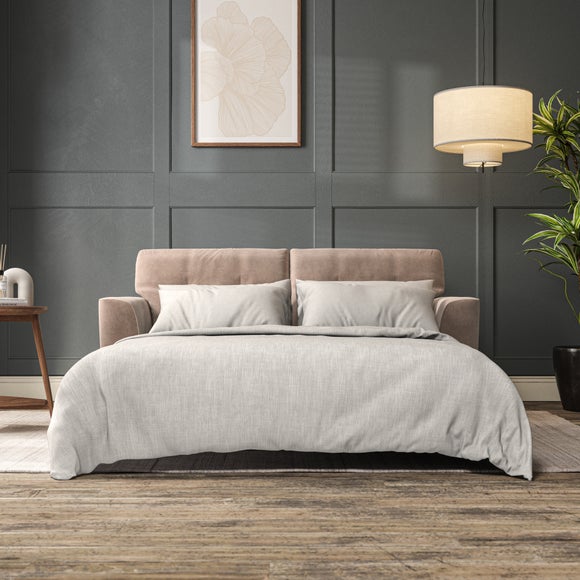 The Cooper 3 Seater Sofa Bed combines Scandinavian-inspired elegance with practical functionality. Its clean-lined design includes high legs, T-shaped seat cushions, and fibre-filled back cushions with button-pull detailing for added comfort and style. Easily transform this sofa into a convenient bed for guests without compromising on aesthetics. With options to customise the fabric, leg finish, and cushion filling, the Cooper Sofa Bed adapts seamlessly to your space.