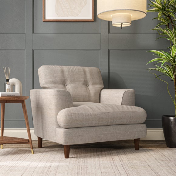 The Cooper Armchair is a compact yet striking piece that embodies Scandinavian-inspired sophistication. Featuring clean lines, an elegant high-leg frame, and a generous T-shaped seat cushion, it’s a stylish addition to any room. The fibre-filled back cushion, adorned with button-pull detailing, provides excellent support and comfort. Customise this armchair to suit your décor with a choice of fabrics, leg finishes, and cushion fillings.
