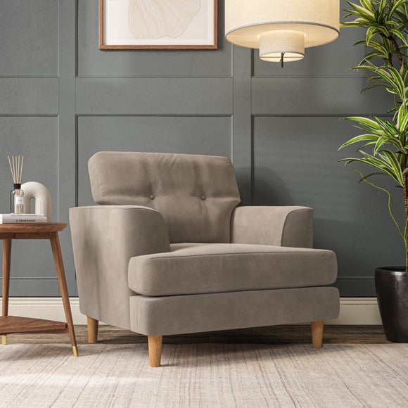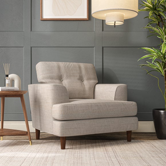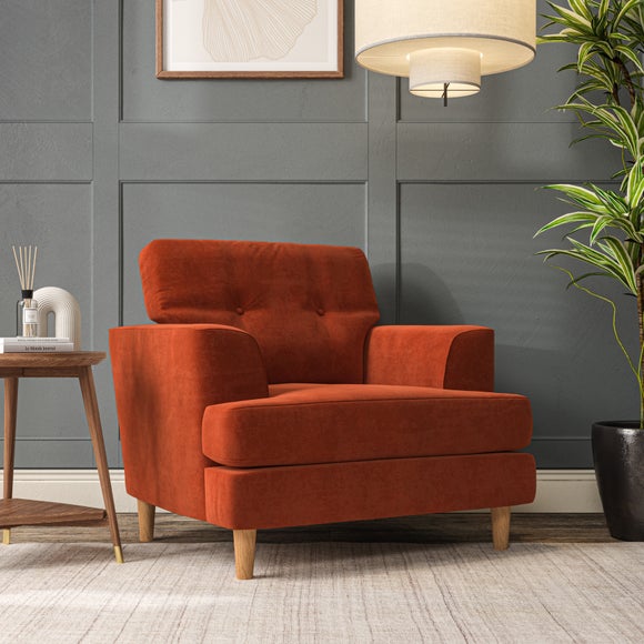 The Cooper Armchair is a compact yet striking piece that embodies Scandinavian-inspired sophistication. Featuring clean lines, an elegant high-leg frame, and a generous T-shaped seat cushion, it’s a stylish addition to any room. The fibre-filled back cushion, adorned with button-pull detailing, provides excellent support and comfort. Customise this armchair to suit your décor with a choice of fabrics, leg finishes, and cushion fillings.