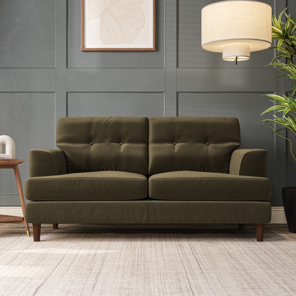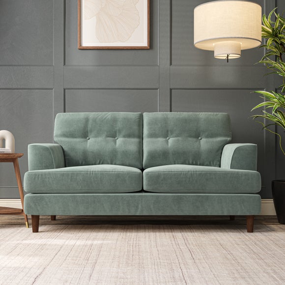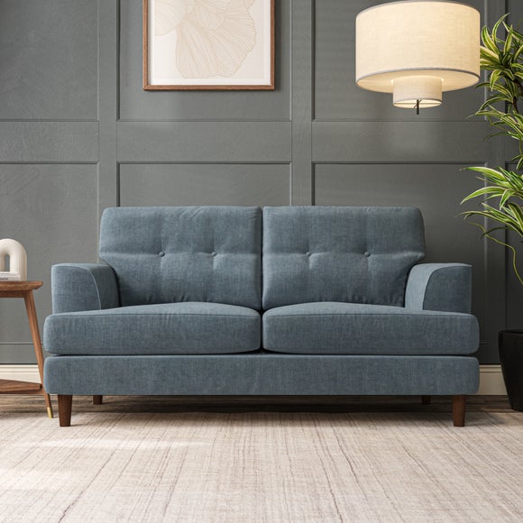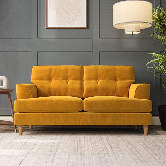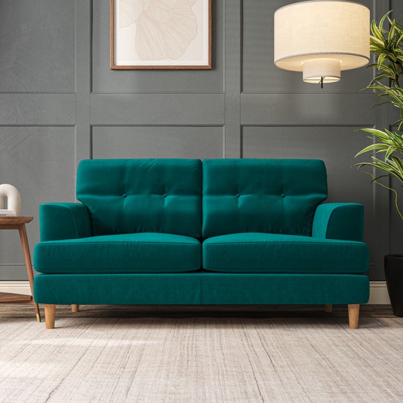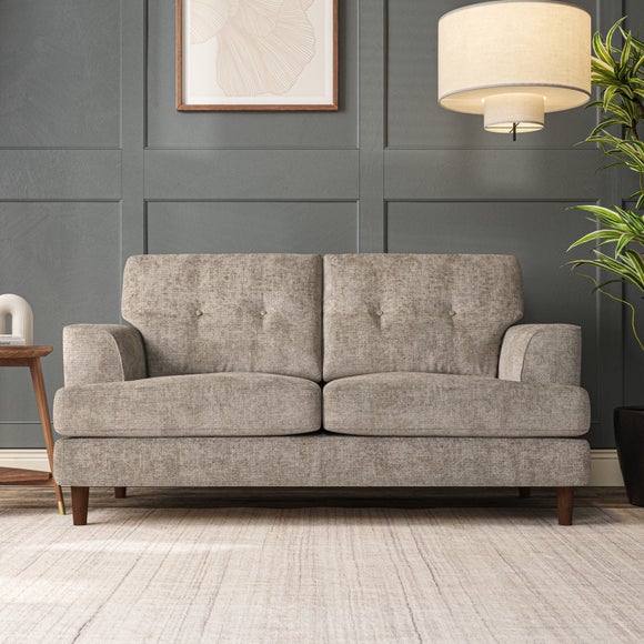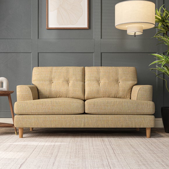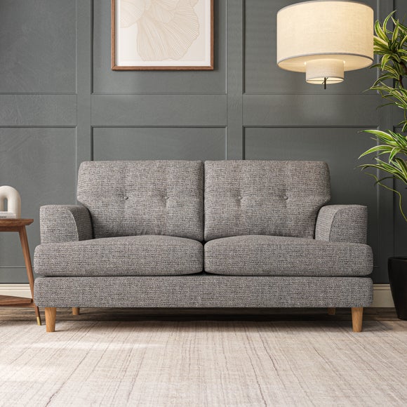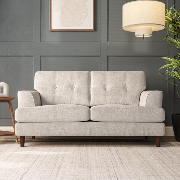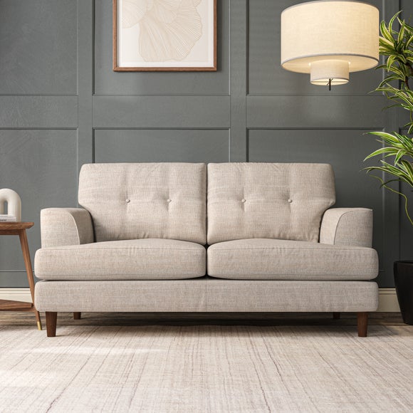 The Cooper Large 2 Seater Sofa offers a sophisticated seating solution with its Scandinavian-inspired design and elegant high-leg frame. The generous T-shaped seat cushions and fibre-filled back cushions, enhanced by button-pull detailing, provide both comfort and visual appeal. Its compact size makes it ideal for smaller spaces without compromising on style or functionality. Choose your preferred fabric, leg finish, and cushion filling to personalize this piece.