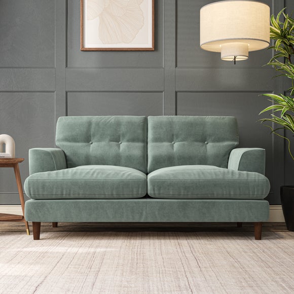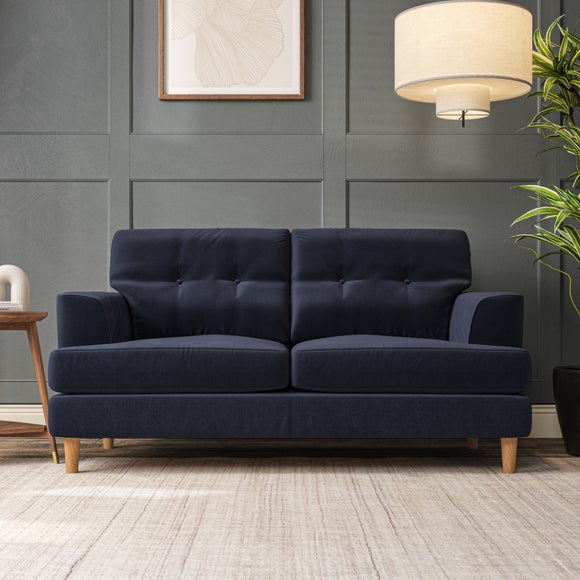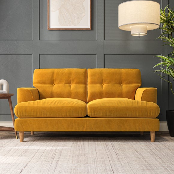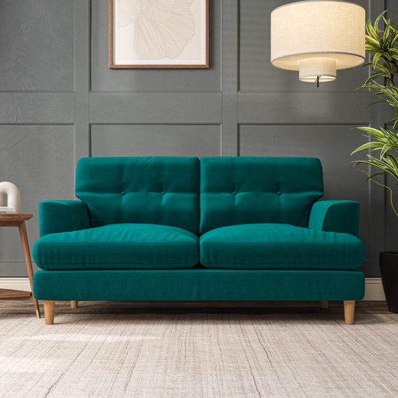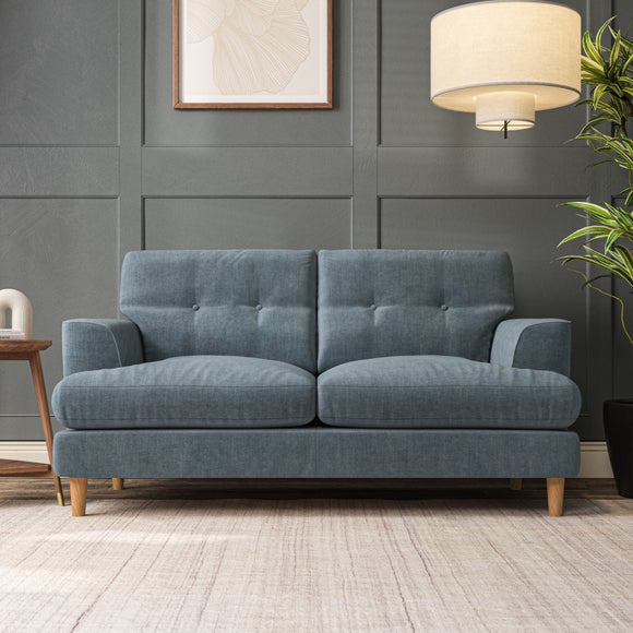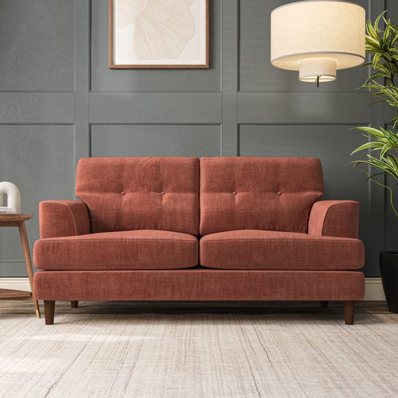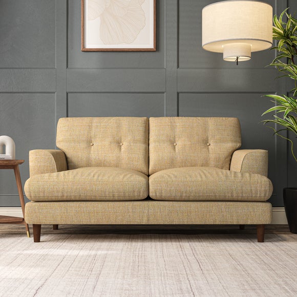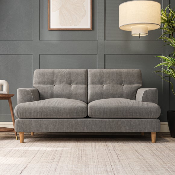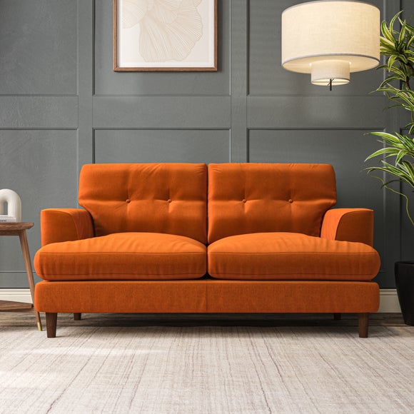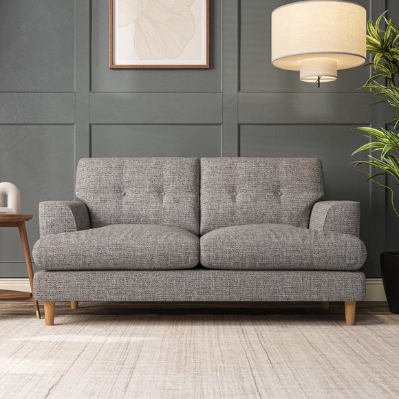 The Cooper Large 2 Seater Sofa offers a sophisticated seating solution with its Scandinavian-inspired design and elegant high-leg frame. The generous T-shaped seat cushions and fibre-filled back cushions, enhanced by button-pull detailing, provide both comfort and visual appeal. Its compact size makes it ideal for smaller spaces without compromising on style or functionality. Choose your preferred fabric, leg finish, and cushion filling to personalize this piece.