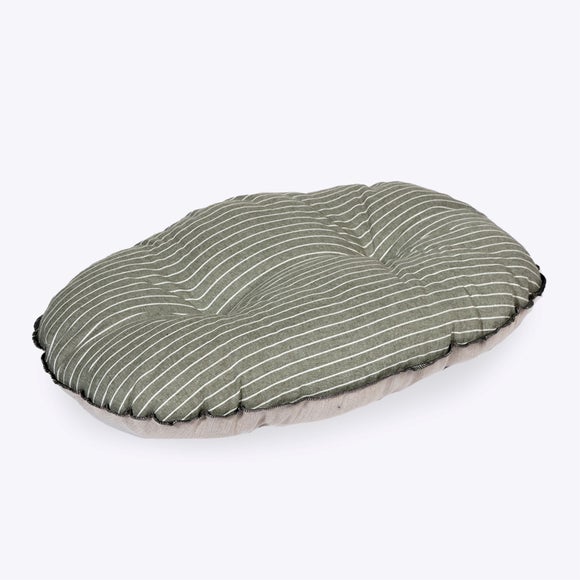 This mattress, available in medium (68cm), large (83cm), and extra large (101cm) sizes, features a soothing mix of woven ticking stripes and soft plains in a calming grey colour. With a fibre filling made from 100% recycled materials, it provides your pet with a soft and comfortable surface. Proudly made in the UK, it’s also machine washable, making maintenance simple and hassle-free.