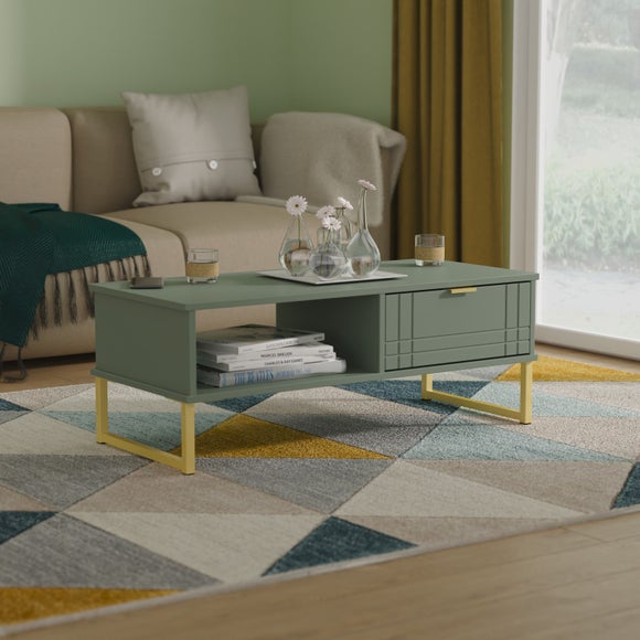 The Darlton coffee table brings together clean lines and distinctive detailing, featuring a scratch-resistant finish and grid-pattern carved fronts for a modern, textured look. Built to order in the UK and delivered fully assembled, it offers practical surface space alongside discreet storage, ideal for living room essentials. Sleigh legs and metal handles, available in gold or black, add a refined accent that can be tailored to suit your space.