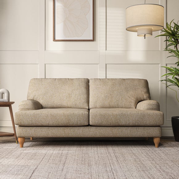 This sofa features bandaged arms with pleat details and a lugged seat, offering a unique and sophisticated look. Built for longevity and comfort, it includes serpentine seat springs and deep fibre-filled back cushions for excellent support. Customise your comfort by choosing between a low-maintenance foam seat or the inviting ‘Qualofill Blue’ fibre seat, made from 100% recycled polyester. The ‘T’ cushion seat and arm design ensure a compact and contemporary feel, complemented by self-sewn seat and back cushions. Available with ‘hour glass’ shaped turned hardwood legs in two finishes, this sofa is both easy to fit and perfect for any stylish living space. Additionally, you can select your preferred fabric and colour to perfectly match your décor.