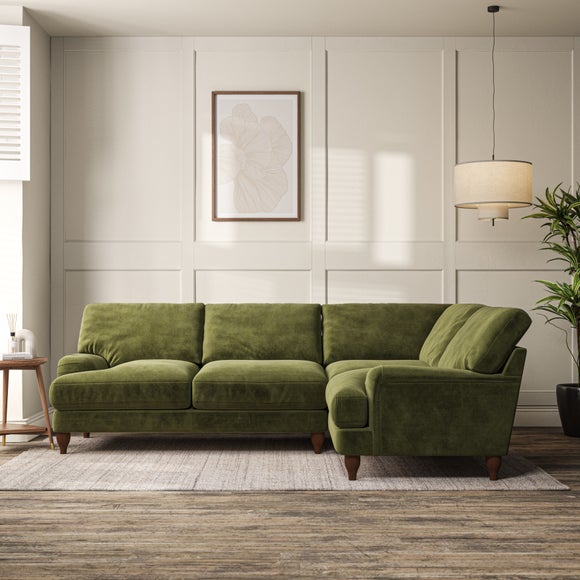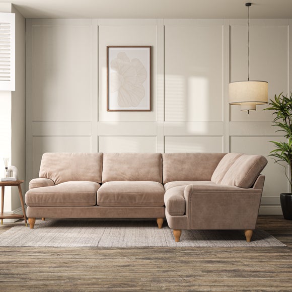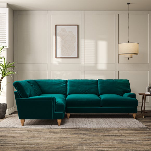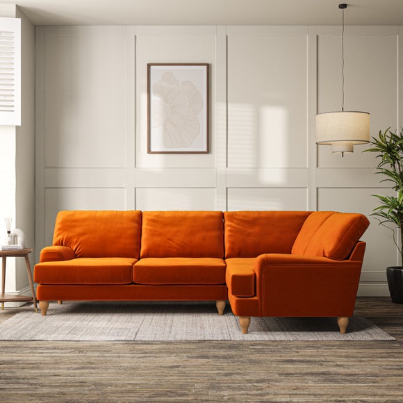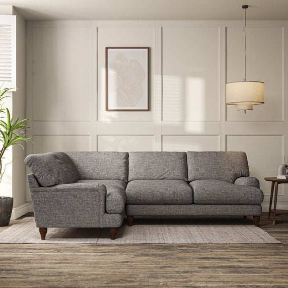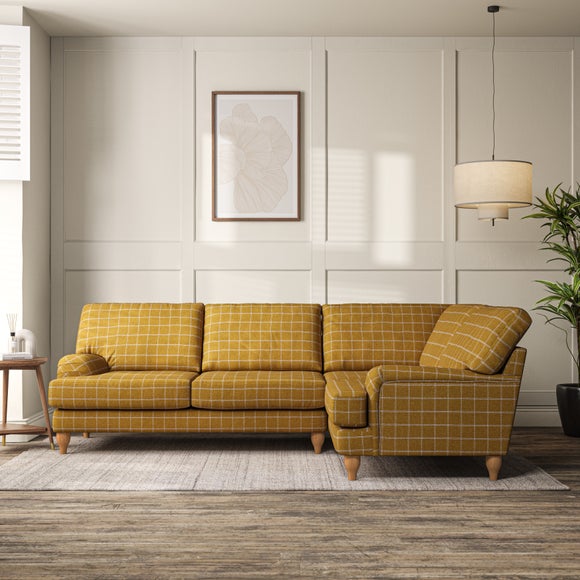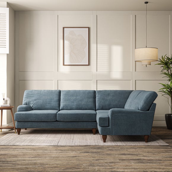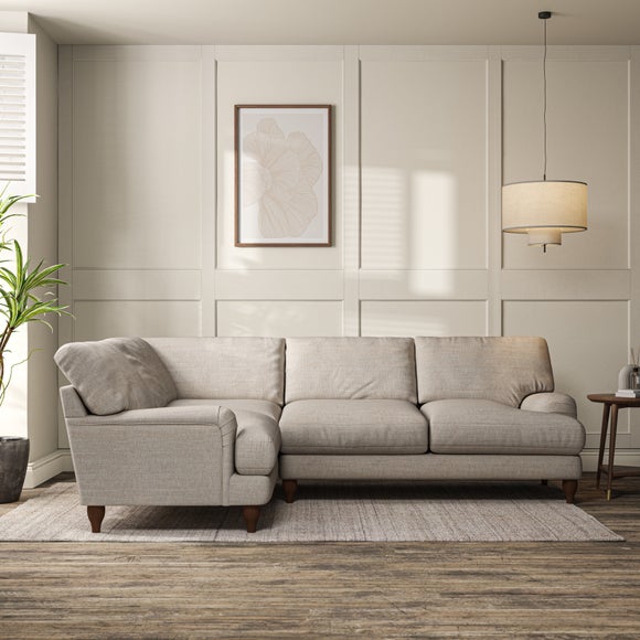 This sofa features bandaged arms with pleat details and a lugged seat, offering a unique and stylish look. Built for longevity and comfort, it includes serpentine seat springs and deep fibre-filled back cushions for excellent support. You can customise your comfort by choosing between a low-maintenance foam seat or the inviting ‘Qualofill Blue’ fibre seat, made from 100% recycled polyester. The ‘T’ cushion seat and arm design ensure a compact and contemporary feel, complemented by self-sewn seat and back cushions. Choose from a right hand or left hand facing corner to fit your space perfectly. Additionally, you can select your preferred fabric and leg colour to perfectly match your living space.