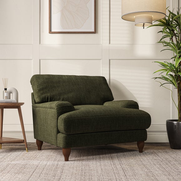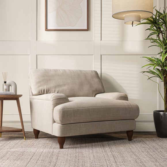 This armchair features a fresh take on the classic bandaged arm design, with pleat details and a lugged seat for a unique and elegant look. Built for longevity and comfort, it includes serpentine seat springs and deep fibre-filled back cushions for excellent support. Customise your comfort by choosing between a low-maintenance foam seat or the inviting ‘Qualofill Blue’ fibre seat, made from 100% recycled polyester. The ‘T’ cushion seat and arm design ensure a compact and contemporary feel, complemented by self-sewn seat and back cushions. Available with ‘hour glass’ shaped turned hardwood legs in two finishes, this armchair is both easy to fit and perfect for any stylish living space. Additionally, you can select your preferred fabric and colour to perfectly match your décor.