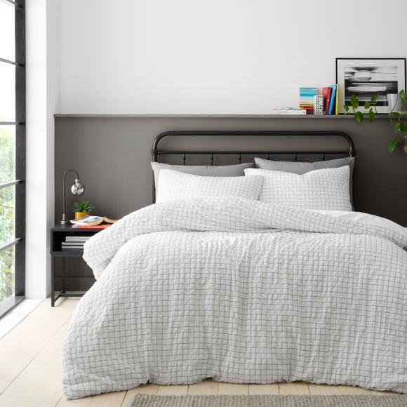 Combine elevated woven texture with modern style to instantly transform your bedroom with the Devon Check Seersucker Duvet Set. This set features an easy, contemporary check pattern that is beautifully enhanced by the timeless charm and tactile dimension of seersucker fabric. The signature crimpled and puckered texture, created during the weaving process from 100% polyester, adds visual interest while providing a soft, breathable surface for a comfortable sleep. This soothing, textured design ensures an easy after care routine with its low-maintenance properties. Rated at a 160 thread count and easily machine washable, this duvet and pillowcase set provides the perfect balance where contemporary design meets luxurious, fuss-free comfort.