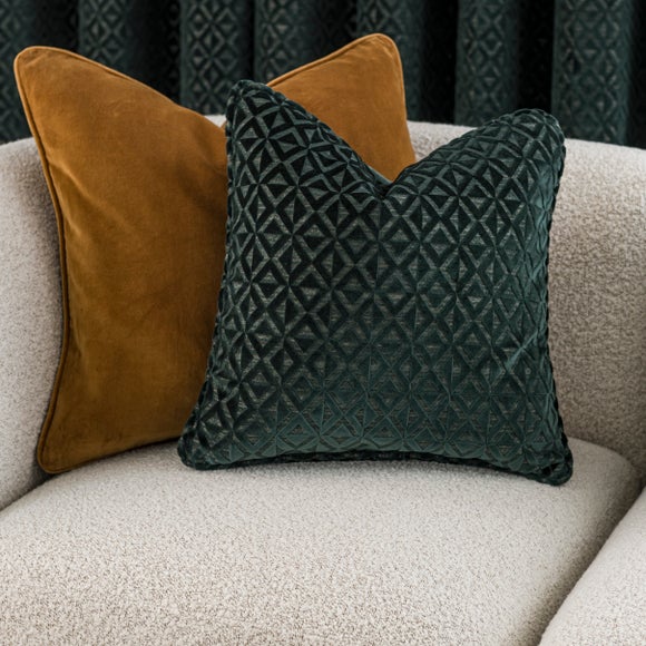 Add a stylish finishing touch to your home with the Diamond Geometric Velvet Cushion. Made from luxuriously soft velvet, this cushion showcases a raised geometric design that brings subtle texture and contemporary charm to any space. Finished with neat piping for a polished look, it’s filled with recycled fibre for lasting comfort and support. The removable cover makes it easy to keep fresh, and with coordinating curtains available, Diamond Geo is perfect for creating a cohesive, modern feel. Available in a range of colourways to suit your décor.