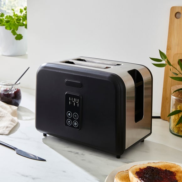 Toast smarter with the Digital 2 Slice Toaster. Its digital screen display gives you precise control over browning levels, so you get the perfect crunch every time. Compact yet powerful, it includes variable-width slots, defrost and reheat functions, and comes in a selection of stylish colours to suit any kitchen décor.