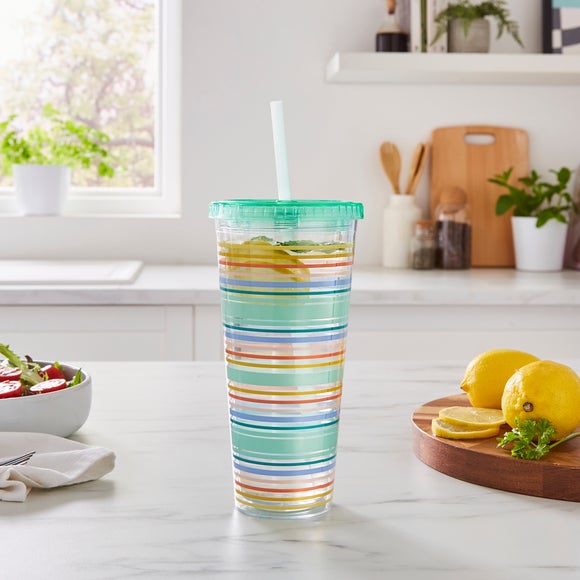 Double Walled Tumbler, keep your drinks cooler for longer with this stylish design. Featuring a double wall construction, it helps maintain the temperature of your favourite beverages while reducing condensation. Complete with a matching straw, it’s perfect for sipping on the go or at home. Available in a choice of colours, so you can pick the one that suits your style. Ideal for everyday use, whether it's water, juice or your go to iced coffee.