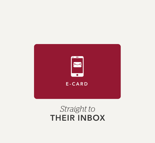An e-Gift Card is digital, can only be purchased online and is sent out to the recipient via email. e-Gift Cards can be sent instantly for the recipient to start spending right away.