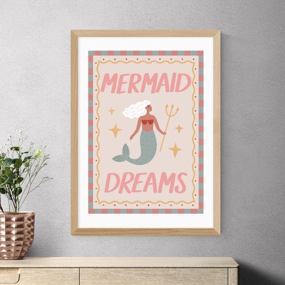 Dive into whimsy with this colourful print of a mermaid, perfect for any room. Select your ideal frame and size to match your decor.
