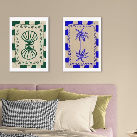 Bring the serenity of the shore to your walls with this calming set of two coastal prints by Shatha Dafai. Featuring soft tones and delicate seashell details, they’re the perfect duo to create a breezy, beach-inspired vibe.