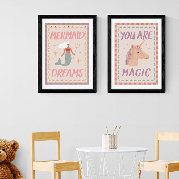 Spark imagination with the East End Prints Set of 2 Mermaid and Unicorn Prints by Kid of the Village. Featuring enchanting sea creatures and unicorns, these prints are available in A1–A4, giclée printed on archival paper, and can be framed or left unframed. Made in the UK, with royalties paid to the artist.