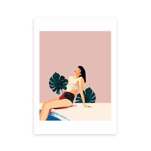 Create the perfect atmosphere to chill and kick back with the relaxing and refreshing feel of this artwork by 83 Oranges. Made using a Giclee printing process to prevent fading, this peaceful print features a woman relaxing by the pool with a pastel and botanical background which will stay vibrant for years to come. Each design is available in four print sizes and a variety of frame options, including unframed, so you can display your artwork however you wish.