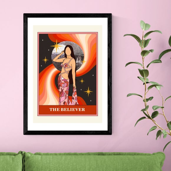 Music lovers can seamlessly combine their passion with this Tarot-inspired Believer Print. Beautifully printed on fade-resistant archival paper, it comes in a range of sizes and solid Obeche wood frame options, and also unframed so that you can display it how you wish to suit your space.