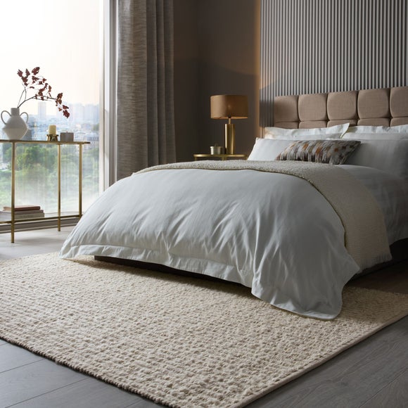Looking for a staple rug to complete your minimalist decor? Then the Ellis Bouclé Striped Wool Rug is the perfect choice. Crafted with a chunky weave from soft wool fibres, the natural wool flecks add a unique, organic feel, while the subtle stripe pattern offers a modern touch whilst maintaining the minimalist aesthetic. The tone-on-tone design seamlessly complements a variety of interiors, creating a serene and sophisticated atmosphere. Perfect for styling in a cosy living room or bedroom.