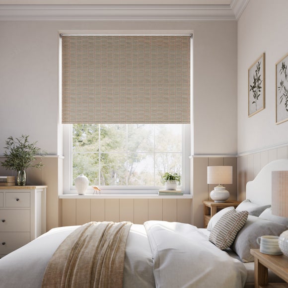 Fun, modern, and playful, the Emily Bond Fergus Made to Measure roller blind will add a stylish touch to your space. Featuring a motif design of horizontal stripes and circles, this blind allows you to introduce subtle pattern and colour into your room without overwhelming it. Available in a range of colourways, this blind is versatile across various interior styles and rooms. Complete with blackout lining, this roller blind is practical and provides full light blocking and privacy. Made from polyester, this blind is highly durable and easy to wipe clean.