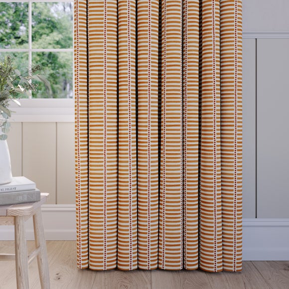 The Emily Bond Fergus Made to Measure curtains feature a fun, modern, and playful motif design of horizontal stripes and circles. Available in a range of colourways from neutral to more vibrant tones, these curtains create an inviting feel and are a great choice for living rooms, bedrooms, and children's rooms. Made from 100% cotton, the fabric is long-lasting and breathable. The curtains have a natural feel and the cotton composition helps them hang neatly without creasing.