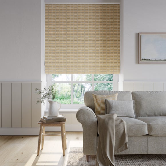 The Emily Bond Fergus Made to Measure roman blind showcases a fun, modern, and playful motif design of horizontal stripes and circles. From neutral to more vibrant tones, choose from a selection of colourways. Made from 100% cotton, the fabric is long-lasting and breathable. A great choice for living rooms, bedrooms, and children's rooms.