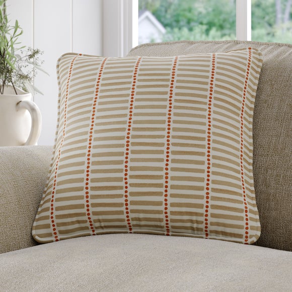 The Emily Bond Fergus Made to Order cushion will bring a fun, modern, and playful touch to your space. Showcasing a motif design of horizontal stripes and circles, choose from a selection of colourways. Made from 100% cotton, the fabric is long-lasting and breathable. A great choice for living rooms, bedrooms, and children's rooms.