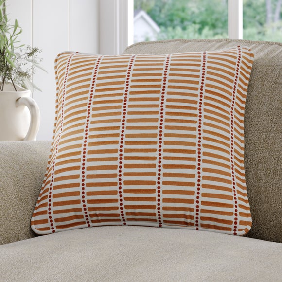 The Emily Bond Fergus Made to Order cushion will bring a fun, modern, and playful touch to your space. Showcasing a motif design of horizontal stripes and circles, choose from a selection of colourways. Made from 100% cotton, the fabric is long-lasting and breathable. A great choice for living rooms, bedrooms, and children's rooms.