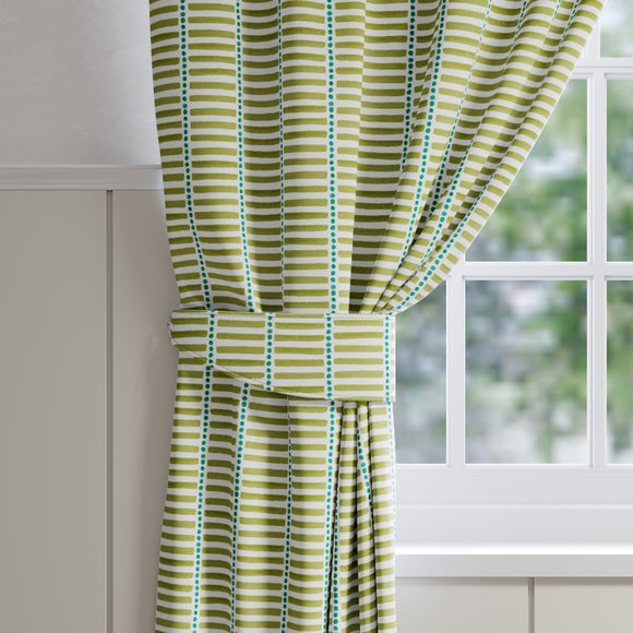 Fun, modern, and playful, the Emily Bond Fergus Made to Order tiebacks feature a motif design of horizontal stripes and circles. From neutral to more vibrant tones, choose from a selection of colourways. Crafted from 100% cotton, the fabric is long-lasting and breathable. A great choice for living rooms, bedrooms, and children's rooms. Pair with matching Made to Measure curtains for a seamless look and to keep your curtains neat and tidy.