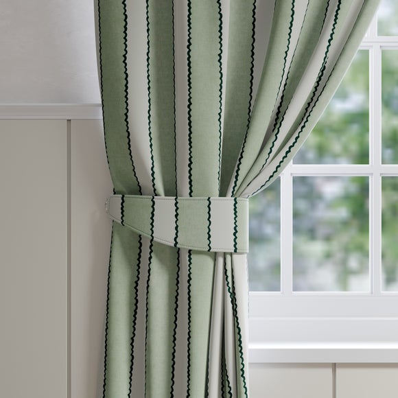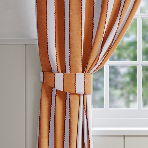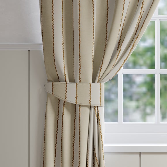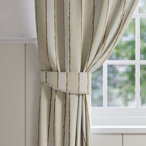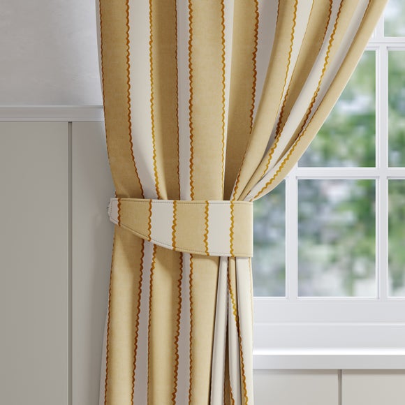 Add a stylish and playful addition to your space with the Emily Bond Gabriel tiebacks. These tiebacks showcase a modern stripe design in a range of neutral and vibrant colourways. Coordinate with matching Made to Measure curtains for a neat and seamless look. Crafted from durable and breathable cotton.