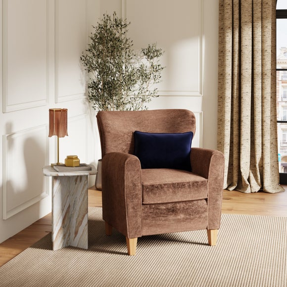 This chair combines timeless comfort with a warm, contemporary feel. Upholstered in soft chenille with a subtle sheen, the rich chestnut tone adds a cosy and grounded presence to any interior. Gently curved arms and a deep, cushioned seat invite you to unwind, while the tailored silhouette ensures it looks refined from every angle.