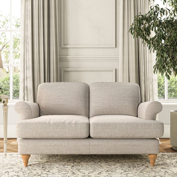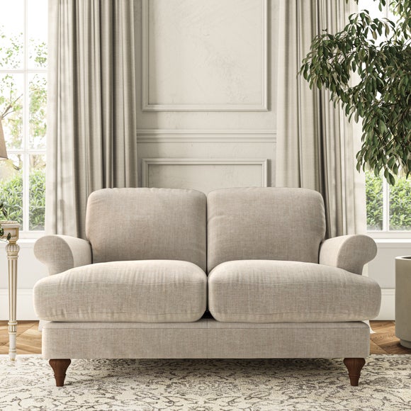 Compact yet full of character, the Evie 2 Seater Sofa brings timeless style to smaller spaces. Featuring slender scroll arms and tailored lugged seat cushions, it offers a classic silhouette that fits seamlessly into any décor. The fibre-filled back cushions provide comfort and support, making this sofa as inviting as it is stylish. Available in a range of fabrics, colours, cushion fillings, and leg finishes, the Evie 2 Seater can be customised to suit your tastes.