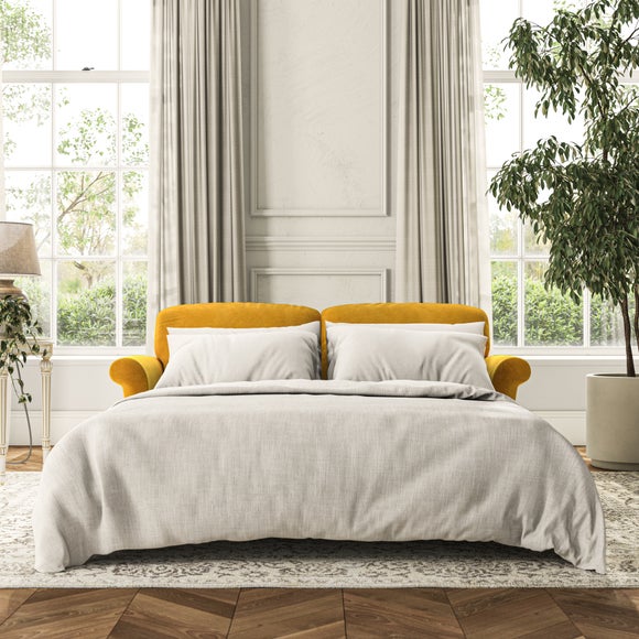 The Evie 2 Seater Sofa Bed combines style with practicality, making it a versatile choice for any home. With its elegant slender scroll arms and neat lugged seat cushions, it offers a refined look, while the hidden sofa bed provides a convenient sleeping solution for guests. The fibre-filled back cushions offer supportive comfort for everyday seating, and the sofa bed mechanism is easy to use when needed. Customise it with your preferred fabric, colour, cushion filling, and leg finish.