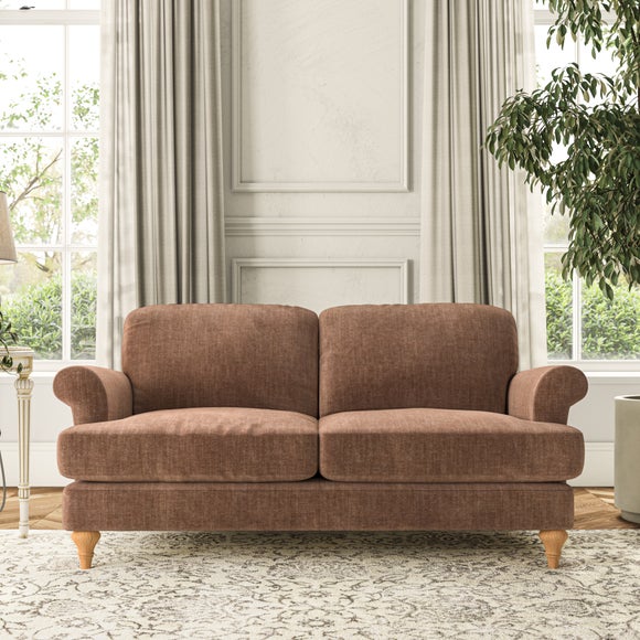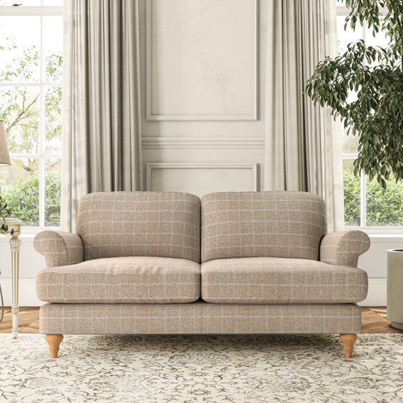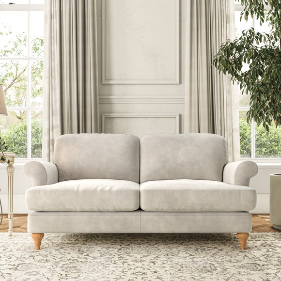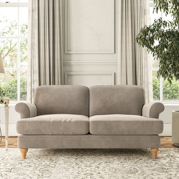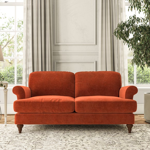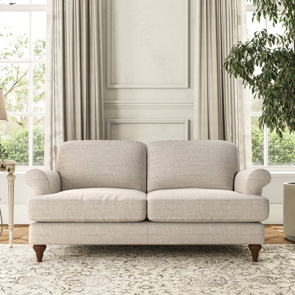 The Evie Large 2 Seater Sofa offers a comfortable and refined seating solution for more compact spaces. With its slim scroll arms and neat lugged seat cushions, this sofa combines practicality with a classic design. The fibre-filled back cushions add a soft yet supportive feel, perfect for everyday lounging. Choose your preferred fabric, colour, cushion filling, and leg finish to make this piece truly your own.