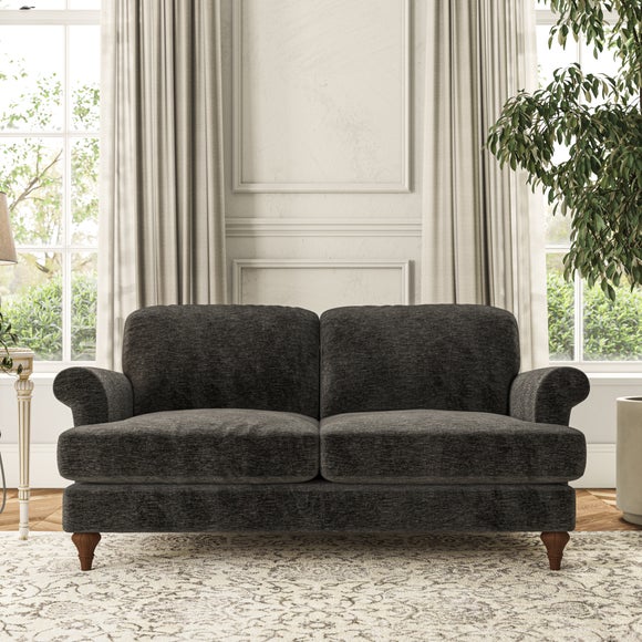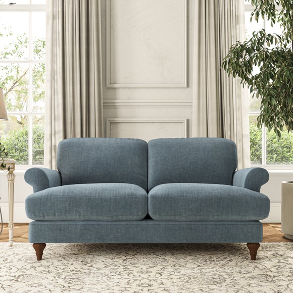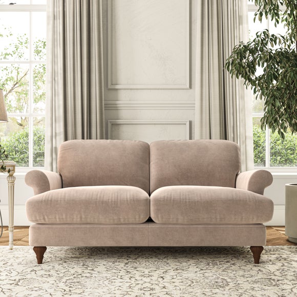 The Evie Large 2 Seater Sofa offers a comfortable and refined seating solution for more compact spaces. With its slim scroll arms and neat lugged seat cushions, this sofa combines practicality with a classic design. The fibre-filled back cushions add a soft yet supportive feel, perfect for everyday lounging. Choose your preferred fabric, colour, cushion filling, and leg finish to make this piece truly your own.
