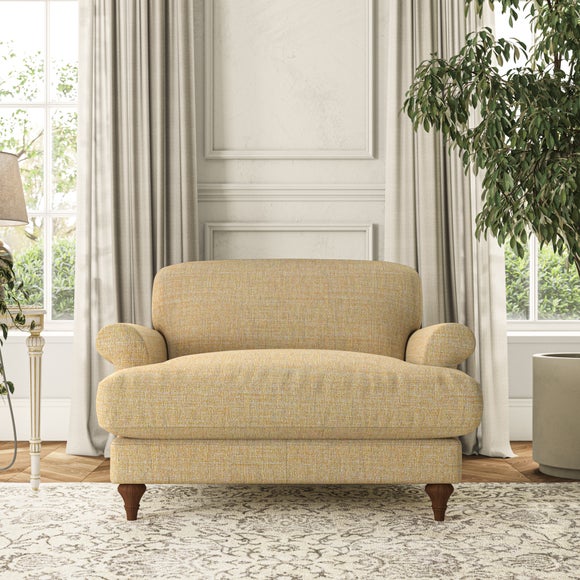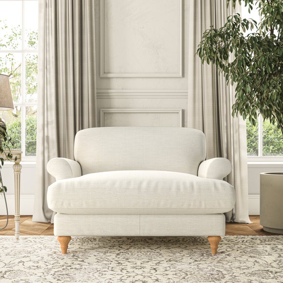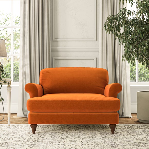 The Evie Snuggle Chair is the perfect cosy addition to any room, offering a compact yet elegant design that’s ideal for relaxing. With slender scroll arms and a snug lugged seat cushion, this chair provides both style and comfort in a smaller package. The fibre-filled back cushion delivers soft support, making it an inviting spot for one or a cosy retreat for two. Customise it to suit your space with your choice of fabric type, colour, cushion filling, and leg finish.