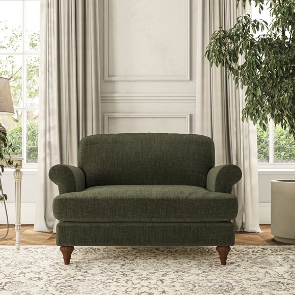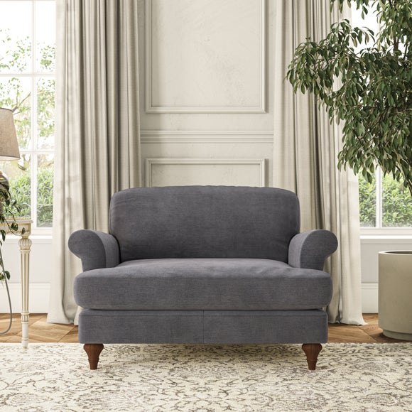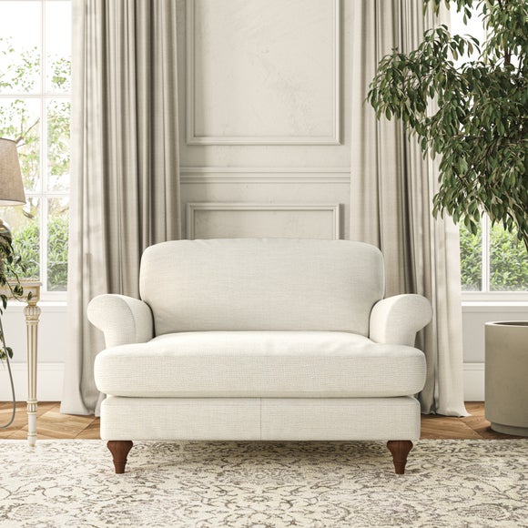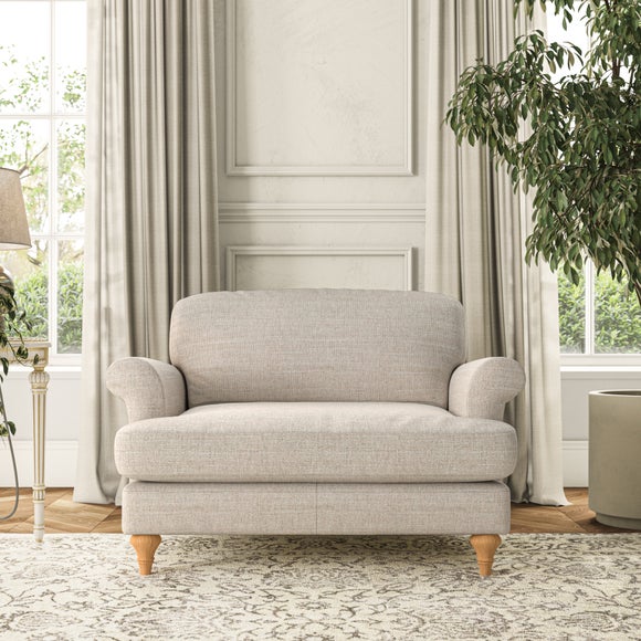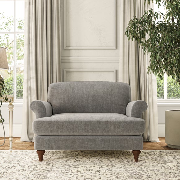 The Evie Snuggle Chair is the perfect cosy addition to any room, offering a compact yet elegant design that’s ideal for relaxing. With slender scroll arms and a snug lugged seat cushion, this chair provides both style and comfort in a smaller package. The fibre-filled back cushion delivers soft support, making it an inviting spot for one or a cosy retreat for two. Customise it to suit your space with your choice of fabric type, colour, cushion filling, and leg finish.