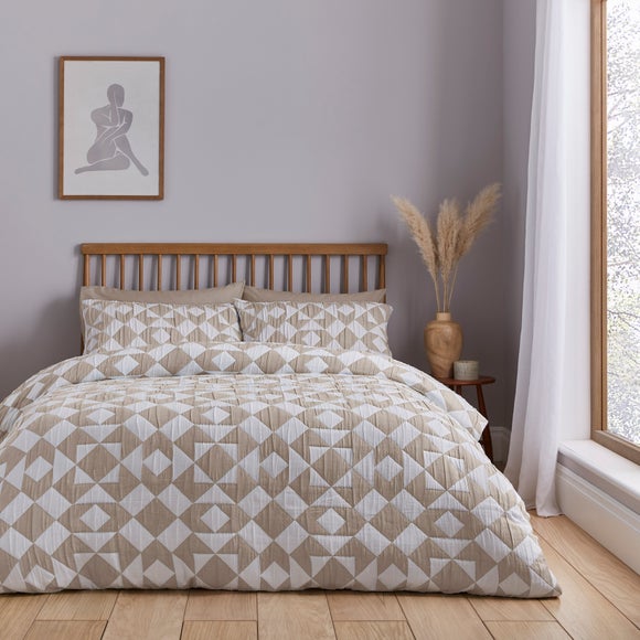 Add a modern twist to your bedroom with the Finn Geo Bedding Set. This relaxed yet stylish design blends contemporary geometric patterns with tactile textures for a cosy and inviting feel. The easy-care fabric and cool, neutral colourways make it a versatile and chic choice for any modern home.