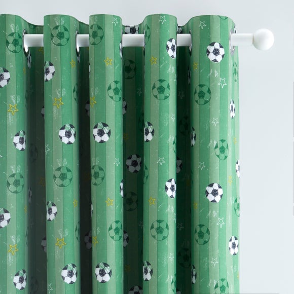 Score big on style and sleep with these Football Pitch Blackout Eyelet Curtains. Featuring a bold football pitch design, they’re perfect for little ones who dream of scoring the winning goal. The blackout lining helps block out light, making them ideal for restful nights and weekend lie-ins. Easy to hang with a fuss-free eyelet header and machine washable for everyday ease. Matching tiebacks are included to keep things tidy during the day. A great choice for any young football fan’s bedroom.