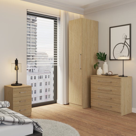 Compact spaces need not compromise on style with this sleek single wardrobe. With a modern bar handle and either oak effect or dark grey anthracite colourways, this wardrobe comes with an adjustable hanging rail and shelf, meaning you can adjust your storage to suit you. With the option to add a mirror, this is a great storage solution for smaller bedrooms or capacity requirements.