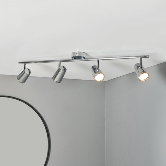The Freya 4 Light Adjustable Spotlight Bar delivers a contemporary, streamlined look with the added flexibility of four adjustable heads. Made from metal and glass, it’s designed to feel modern and polished whilst giving you targeted light where it matters most — over a vanity, along a hallway, or across a kitchen workspace. With an IP44 rating, it’s suitable for bathroom use too, bringing a confident, functional finish to everyday lighting.