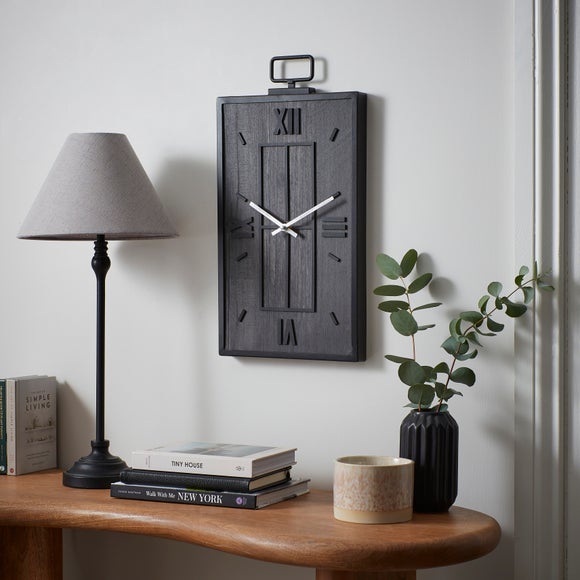 Sporting an industrial-inspired style and design, this rectangular wall clock is the newest must-have for your home. Unique in appearance, this piece boasts embossed time indicators and a wood-effect analogue face/display. Choose from brown or charcoal to suit your decor.