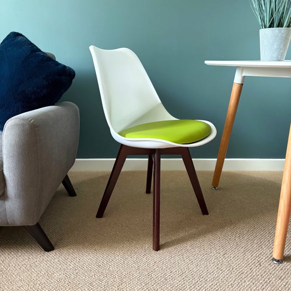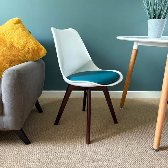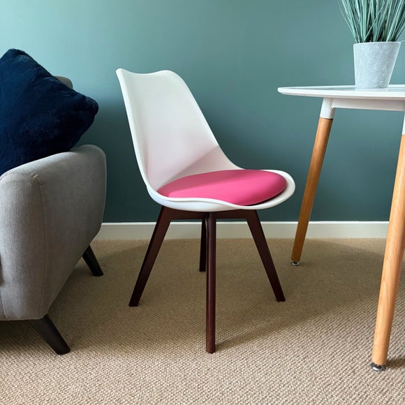 Part of a collection that effortlessly blends design and practicality, this chair features a transparent plastic curvaceous seat and a soft, easy-to-clean, colourful seat pad, making it both stylish and comfortable. The contoured, clear seat and four squared light wood legs not only look great but also provide exceptional sturdiness.