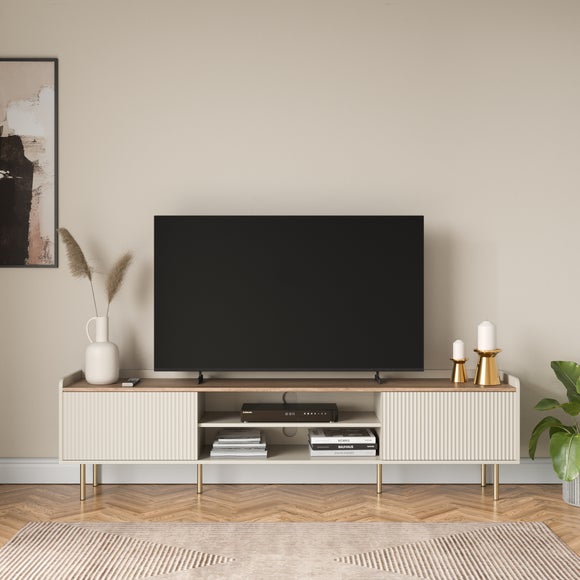 This Georgi TV unit is designed for homes that need both space and style, offering a wide and sturdy surface that easily supports larger televisions while leaving plenty of room for consoles, speakers and decorative pieces, along with hidden storage to hide the everyday clutter. Available in black for a bold, modern look or natural for a warm and relaxed finish, it becomes an instant focal point in your living area.