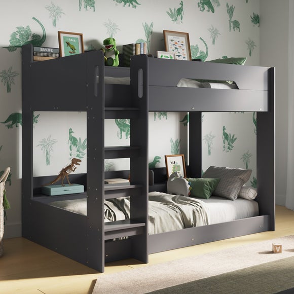 The Gravity bunk bed is a smart choice for families seeking functionality and safety. Its low-to-the-ground bottom bunk makes it easy for younger children to climb in and out, while wide steps and hand slots on the ladder ensure secure access to the top bunk. Dual storage shelves on both bunks provide ample space for books, toys and personal items, helping to keep the room tidy.