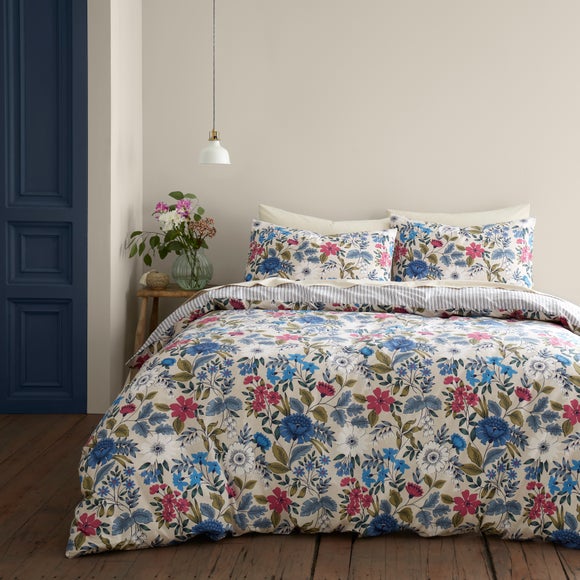 Create a relaxed and inviting space with the fresh, charming design of the Hayes Floral Duvet Cover and Pillowcase Set. Woven from super soft 100% Cotton, this bedding is naturally breathable and smoothly comfortable, providing the ideal surface for year-round rest. The elegant pattern features a delicate mix of blue, pink, and white blooms within soft foliage, bringing a light, airy feel to your room. For added flair, the reverse features an elegant striped pattern. This set, is fully machine washable and available in four sizes, allowing you to easily introduce a beautifully vibrant floral design without compromising on the superior feel and enduring quality of pure cotton.