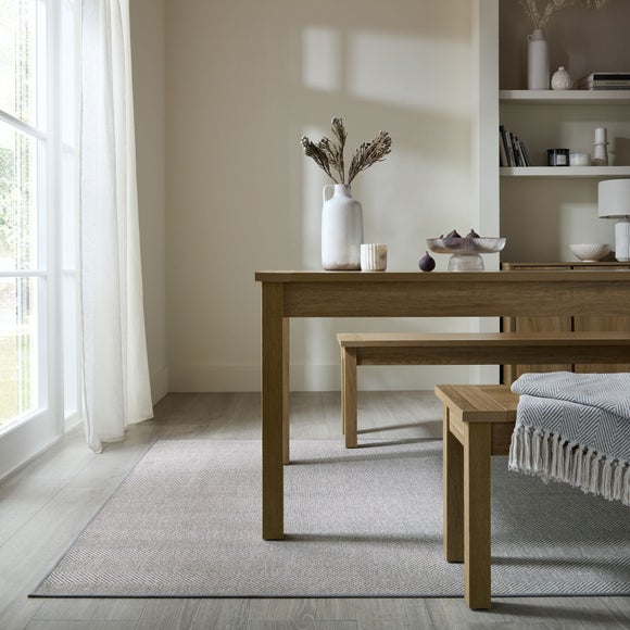 Herringbone Weave Washable Rug brings a touch of elegance to your home. Crafted in a soft touch flatweave finish, this rug offers a soft underfoot feel while being easy to maintain with its washable design, perfect for busy family homes. Herringbone weave Rug has built in anti-slip backing to keep it securely in place, A great addition in high traffic areas that need an extra touch of security and durability.