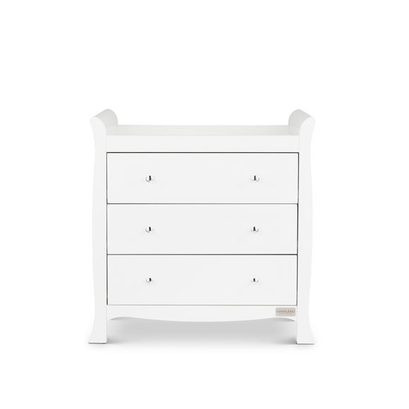 On the top is a changing unit that can fit mats up to 76cm x 46cm. Don't worry if things get a little messy, the unit's surface is easy to wipe clean. When your child grows out of nappies, the changing top can be removed, transforming the unit into a regular chest of drawers. The elegant handles add the perfect finishing touch to this unit.