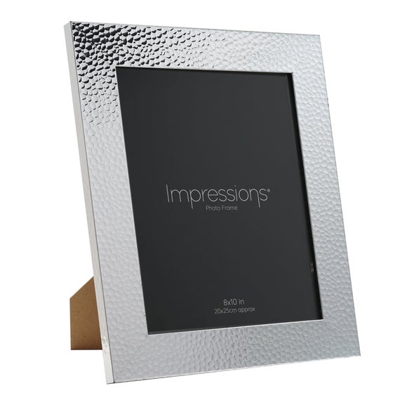 This photo frame adds modern texture and shine to desks, shelves, or sideboards. The hammered silver-effect finish creates visual interest while keeping the overall look sleek and contemporary. Designed for easy tabletop display, the sturdy easel back keeps your photo securely supported. A standout yet versatile option for showcasing a favourite memory or gifting.