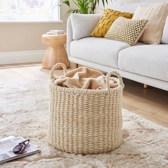 Bring natural charm to your storage with this handmade jute basket. Crafted from 100% jute in a stylish rope design, it’s as durable as it is decorative, with sturdy handles for easy carrying. Perfect for tidying away throws, toys or everyday essentials, it adds a warm, textured touch to any room. Available in two sizes, so you can mix, match and keep your space beautifully organised.