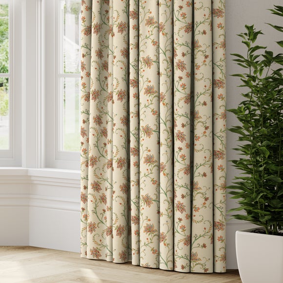 Timeless and sophisticated, the Kentwell Made to Measure curtains feature a beautiful and detailed floral design on a natural background. Great for adding colour and a hint of nature into your space without overwhelming it. Made from a blend of cotton and linen, these premium curtains are long-lasting and hold their shape and colour over time. They glide effortlessly along a track or pole and have a soft, slightly textured feel. This fabric composition helps to create a neat, yet relaxed drape.